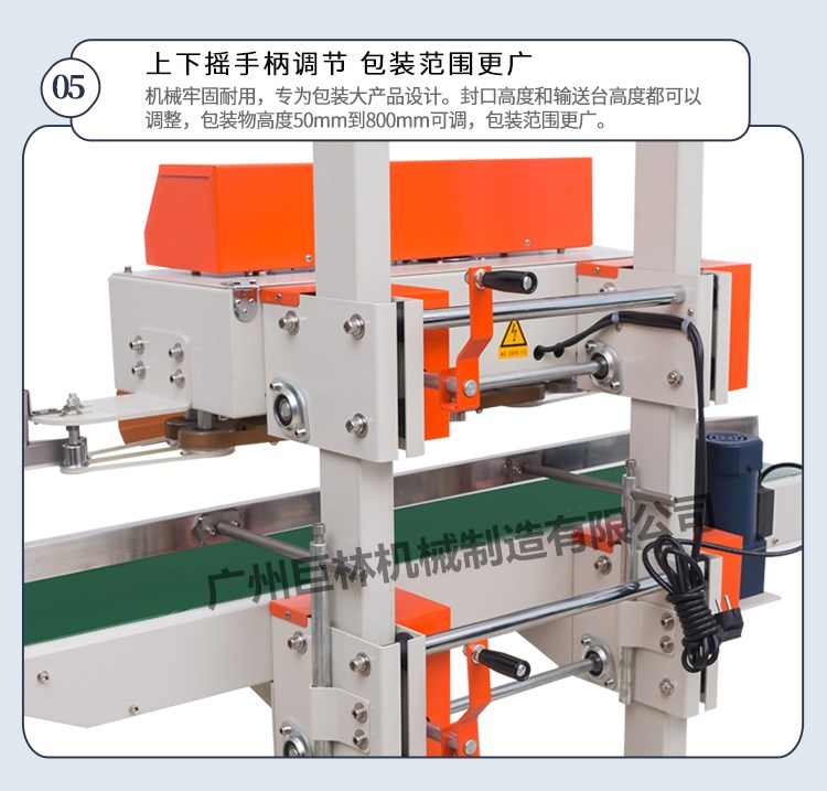 7包装物进入输送台时必须贴着护栏,包装袋口一旦被引导带拖入后,输送带与封口传动同步进行封口包装,此时请不要对包装物任意推动或阻挡,以免造成封口效果不良。