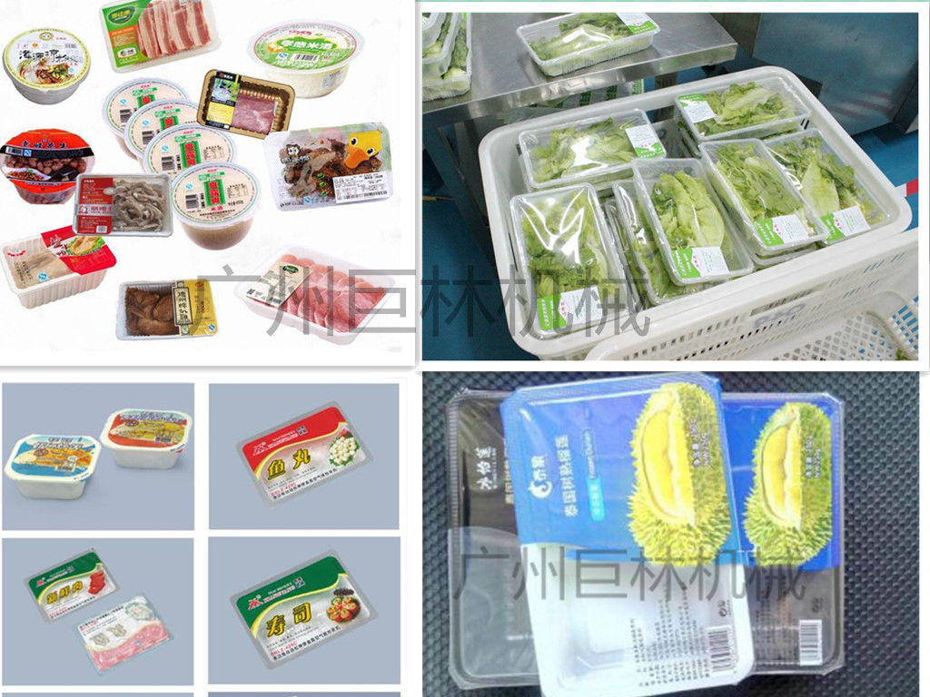 本机广泛用于盒装产品的抽真空保鲜封口,如果(生孰肉制品、食品、菌类、泡菜等海产品,特别适合含水、油产品等)包装达到保鲜、保色,延长产品的保质期。根据不同产品的规格定制膜具,可以完成各种规格的盒装,方、圆不同规格盒杯子等 。